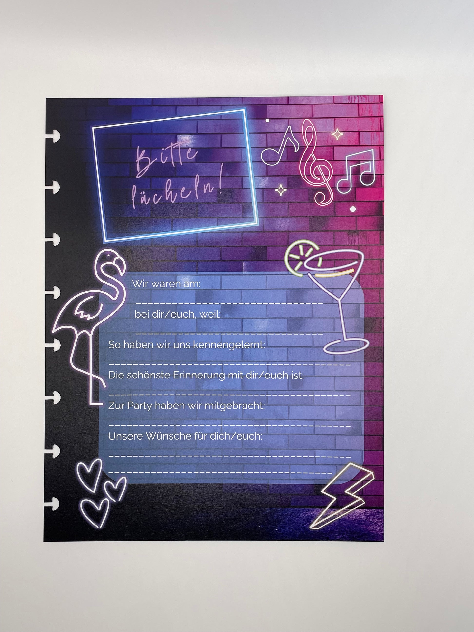 Entdecke auch die Gästebuchseite für einen Gäste. So kannst du dein Gästebuch individuell zusammenstellen und hast eine unvergessliche Erinnerung an deine Party.