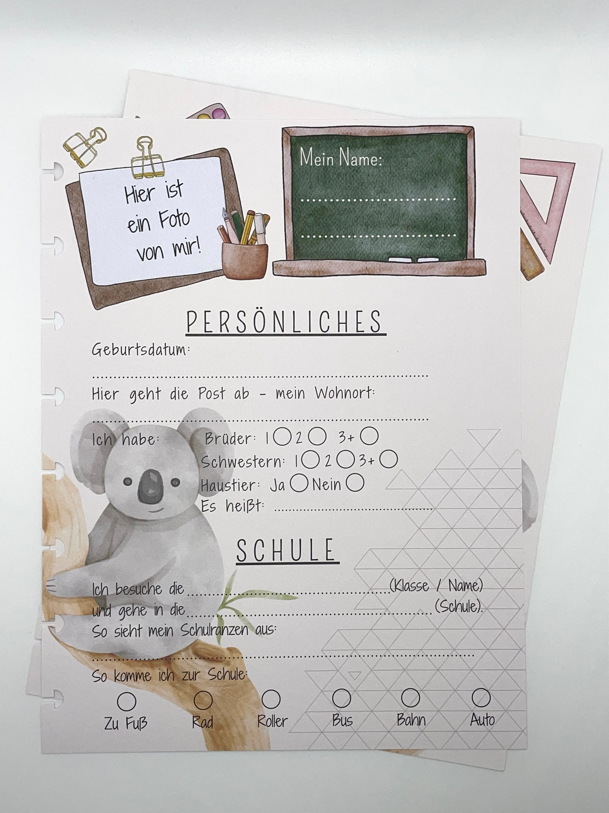 Diese liebevoll gestaltete Freundebuchseite besteht aus zwei zusammengehörenden Seiten - perfekt für alle, die in die Koalaklasse gehen.